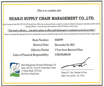Huanji supply chain is a comprehensive international supply chain management enterprise. Huanji, formerly known as the international freight department of CIMC Yuyao company (state-owned enterprise), was established in 1989 with a registered capital of 50 million. Headquartered in Ningbo, Huanji is a national AAAA-level logistics enterprise, among the top 100 international freight forwarding enterprises in China, the top 50 private freight forwarding enterprises in China, the top 100 service enterprises in Ningbo, and as a Model Enterprise of Integrity in Ningbo.